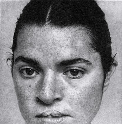 En ocasiones manipula las imágenes para abstraer los rostros. “En uno de mis retratos favoritos, imaginé una especie de superposición, como si dos rostros femeninos chocaran entre sí, donde uno se proyecta como un círculo sobre la superficie del otro”, explica. “A través de esta transparencia se distinguen una boca y unos dientes fantasmales. Me gusta la idea de ir acercándose a un rostro, que parece en orden, y encontrarse con una abstracción. Se trata de jugar con las expectativas de la audiencia”.